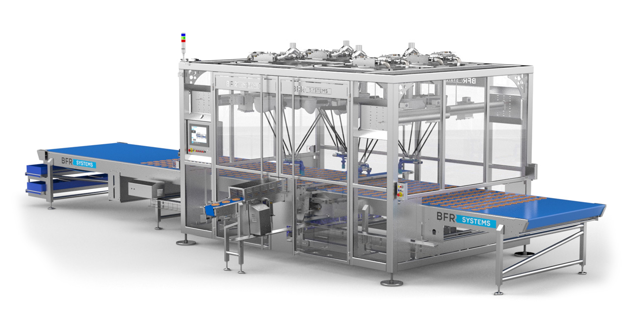 Dependiendo de si los panqueques son cocidos en hornos giratorios (velocidades medias hasta 12,000 productos por hora) y llegan en flujo desequilibrado, o si son cocidos en hornos túneles y se entregan en filas perfectamente ordenadas (velocidades hasta 24,000 productos por hora); dependiendo de si son frescos o congelados, BFR SYSTEMS tiene una solución para recogerlos y envasarlos.