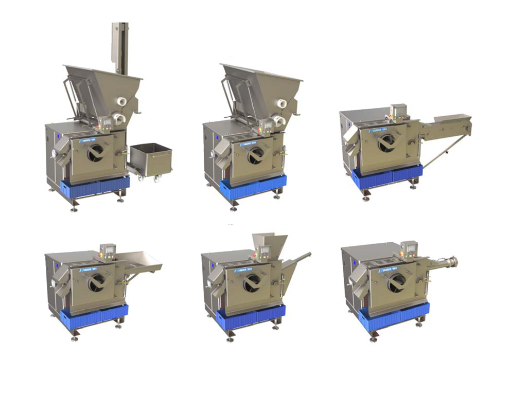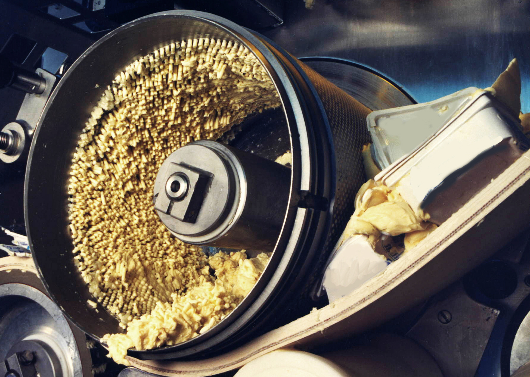 Les séparatrices Baader permettent une séparation douce, par pression du produit au moyen d’une bande élastique contre un tambour perforé, les parties molles passant au travers des perforations. Les parties dures restent quant à elles à l’extérieur du tambour et sont éliminées au moyen d’un couteau racleur.