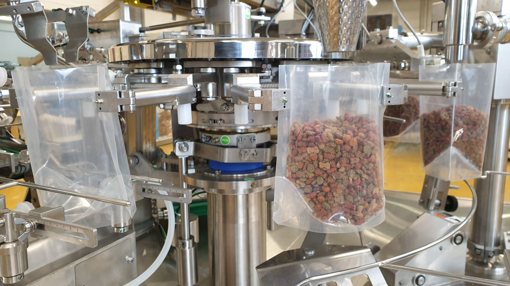 • Ensacheuse rotative, TT9CW Pacraft (Toyo Jidoki), fonctionnant à partir de sachets préformés.